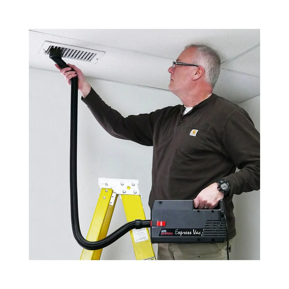 The Atrix Express safety vacuum VACEXP-04 is an excellent and economical H13 HEPA (high efficiency particulate air) filtered ESD safe option for servicing and cleaning static sensitive equipment such as wind turbines, electronics, computers, copiers, printers, pharmaceutical, data centers, ATM’s, robotics and hazardous particulate. It is portable and lightweight, weighing only 4 Lb. The 500W motor has tremendous cleaning power which produces 79 Cfm. It is ESD safe with its static path to ground and includes a built-in electronic line filter to minimize EMI/RFI noise emissions. This vacuum features a one quart immediate containment HEPA filter cartridge. The one quart HEPA filter is 99.97% efficient at 3 Micron and includes three layers of 56 pleat media. The three layers consist of one cellulose layer and two glass layers. The HEPA filter cartridge captures everything from dust and debris to hazardous particulate.