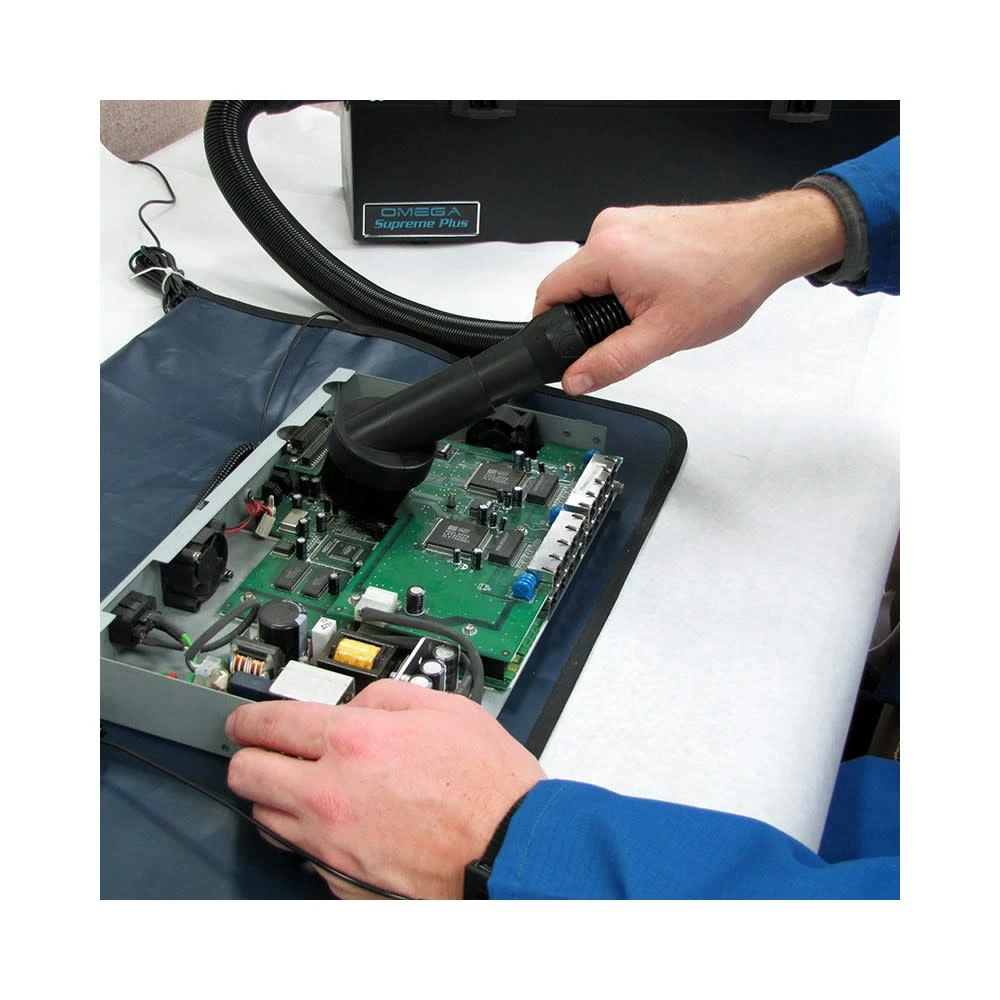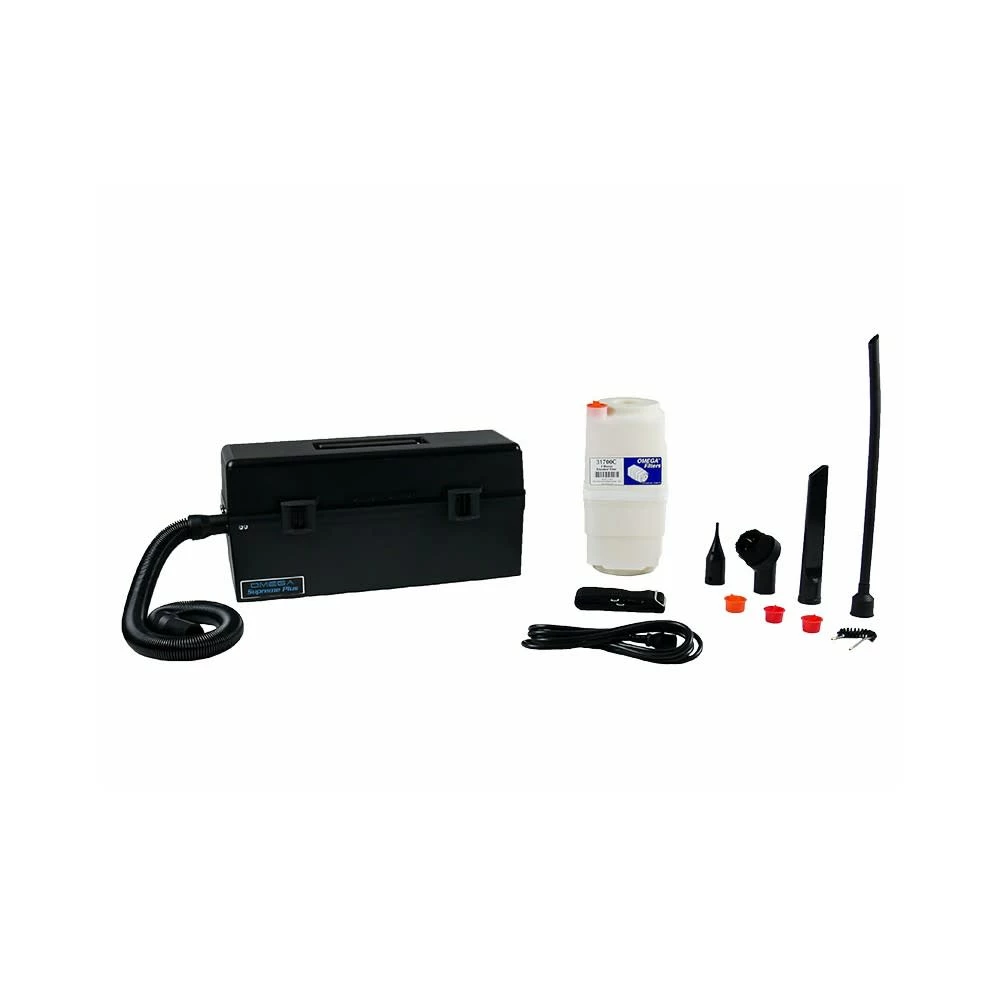 The Atrix Omega Supreme Plus electronic vacuum VACOSE110 is an excellent H12 ultrafine immediate containment option for cleaning static sensitive equipment such as computers, copiers, printers, data centers, ATM’s, gaming, banking, robotic and telecom applications. This vacuum features our most comprehensive ESD safe accessory options. It has Ultrafine filtration, self-storage and contained accessories, 1000 Hrs rated Ametek® Advantek II motor, 10 Ft. detachable power cord and 10 Ft. ESD safe stretch hose. The 1 Gal ultrafine filter has 43 pleat cellulose media and is 88% efficient at 3 Microns. The Ultrafine filter can capture toner, color toner, dust and debris. The vacuum and accessories are ESD safe providing a static path to ground. It also includes a built-in electronic line filter to minimize EMI/RFI noise emissions. The tool box structure and self-contained accessories makes this vacuum convenient for mobile service technicians.