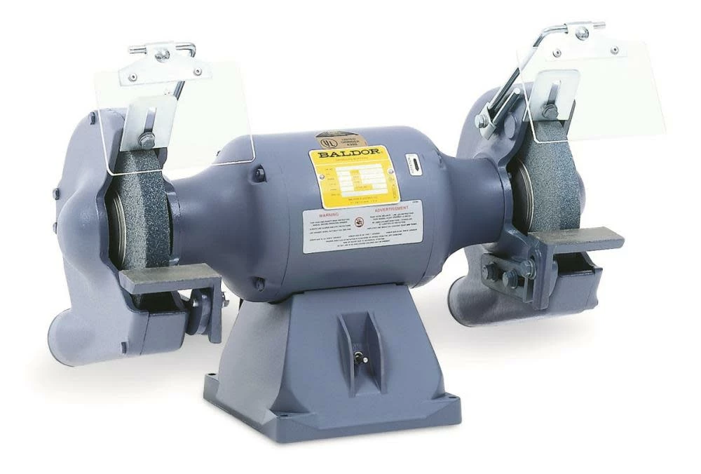 Baldor 8-inch bench grinder has dual spindles for grinding and polishing