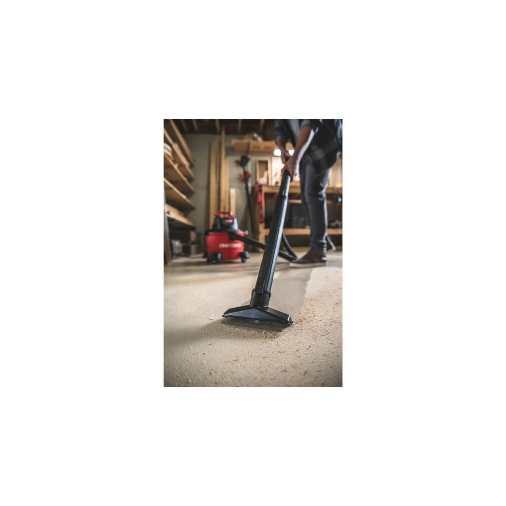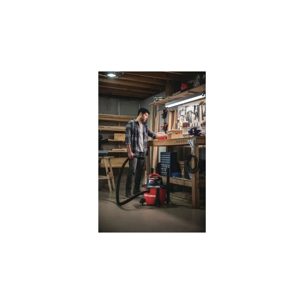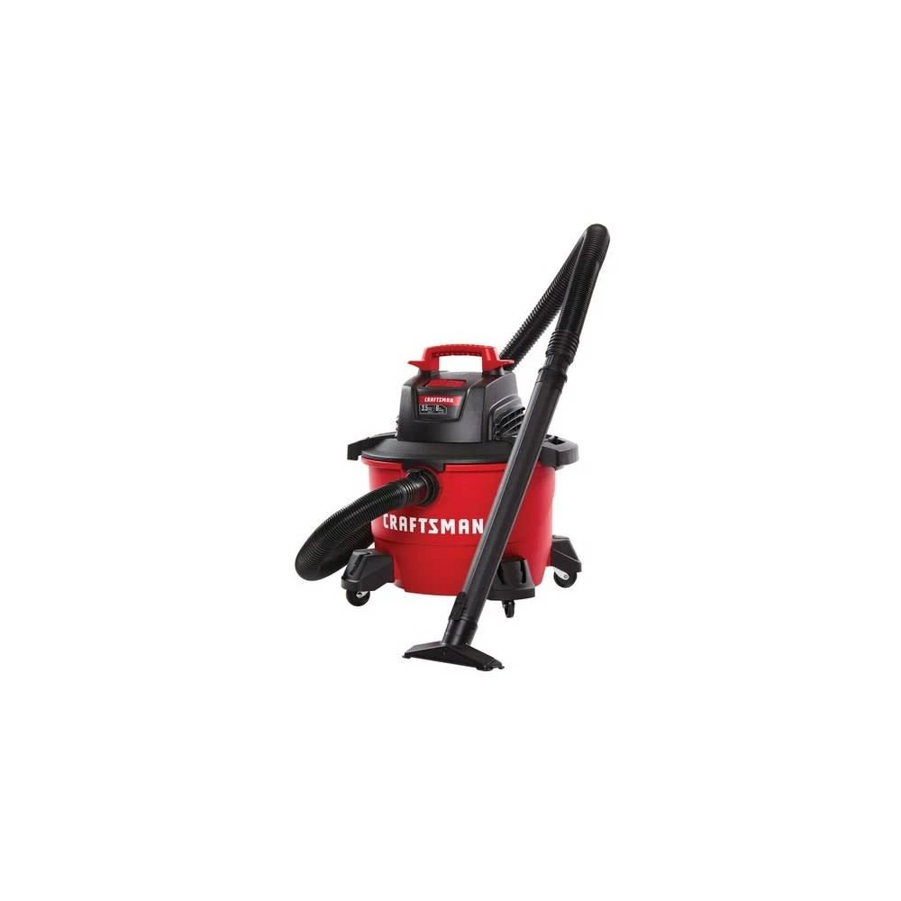 The 6 Gallon wet/dry vac, featuring a 3.5HP peak horsepower motor, is a great lightweight and small capacity vac for the home and garage. This wet dry vacuum easily stores away with its compact size and on-board hose, accessory and power cord organizers that reduce overall storage space. Swivel casters allow for easy mobility, while the rear wheels keep the vac upright on rough surfaces. The filter fastening system makes removing and installing wet dry vacuum filters quick, easy and secure.