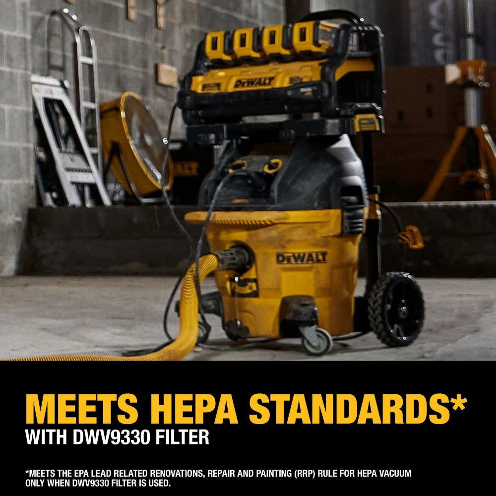 The DWV015 10 Gallon Wet/Dry HEPA Dust Extractor with Automatic Filter Cleaning provides a powerful dust collection solution that allows users to be in compliance with current 1926.1153 OSHA dust regulations. The dust extractor delivers up to 155 CFM suction, with 73″ static water lift. The automatic filter cleaning system initiates filter cleaning continuously every 30 seconds. Pairing the powerful dust extractor with fleece vacuum bags (DWV9402) and a 99.97% efficient HEPA filter (DWV9330) provides even more protection against releasing harmful dust into the work environment. This tool comes Tag Ready™ so users and companies can attach the DEWALT Tag™ (sold separately) and track its location virtually anywhere via the TOOL CONNECT™ System through the DEWALT Site Manager™ app. For added convenience, the 10 Gallon