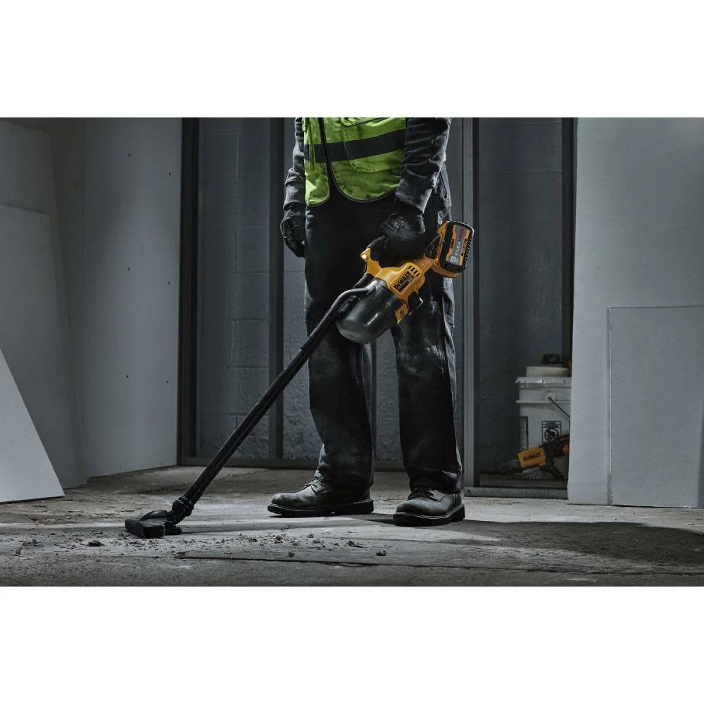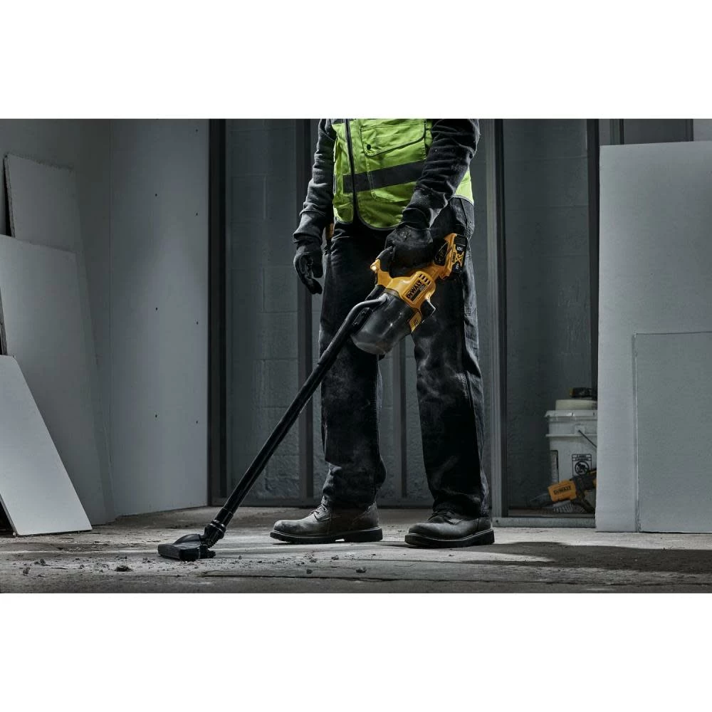 The DEWALT 20V Cordless Dry Hand Vacuum (Tool only) is a jobsite cleaning solution that provides users with powerful performance (46 CFM) to pick up common jobsite debris ranging from drywall, dust, to small screws and nails. This versatile vacuum comes with 6 different cleaning attachment accessories to tackle any cleaning job from floor level to overhead. The hand vacuum can be used to handle smaller messes or used in combination with the extension tube and floor accessory to clean up floor areas. A bright LED light illuminates the darkest areas. A HEPA Filter allows for clean efficient cleanup of fine dust and drywall and follows OSHA Table 1 Compliance under housekeeping rules. It comes fully equipped with an extension tube, floor nozzle, flexible hose, crevice nozzle, gulper brush, round brush, belt hook, accessory holder, and HEPA filter. Up to 21.4 minutes of runtime per charge using DCB205 battery (sold separately). Can fill up to 15 tank fills per charge using DCB205 battery (sold separately).