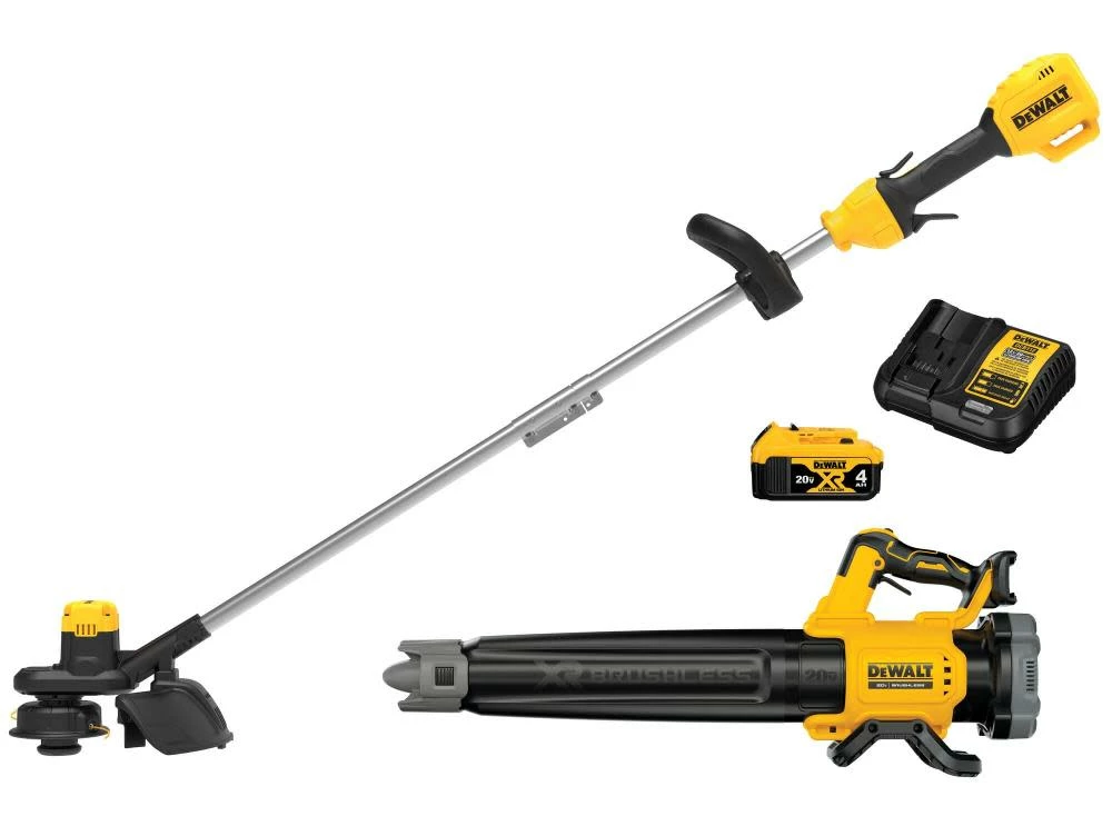 Put the essentials you need for outdoor tasks at your fingertips with the 20V MAX* Combo Kit. Power through overgrowth with the String Trimmer (DCST925) with its 13 in. cutting swath, gear drive transmission design, and variable speed trigger for extended runtime. When you’re done, clear away debris with the Handheld Axial Blower (DCBL722) which features a powerful brushless motor that achieves up to 450 cfm and up to 125 mph with the concentrator nozzle. This combo kit also includes a 4.0Ah battery and charger so you have everything you need to get the job done.