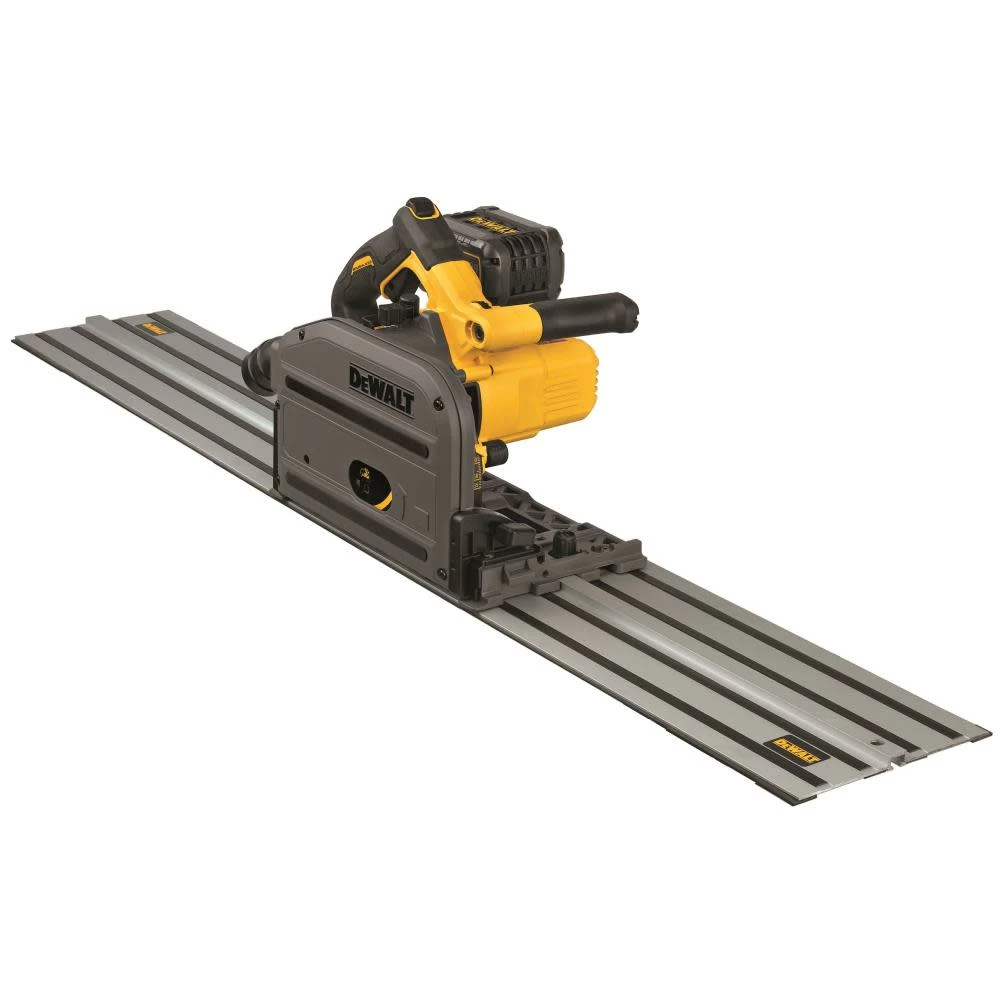 The DCS520 60 V MAX* 6-1/2 In. TrackSaw kit easily Powers through hardwoods up to 2-1/8 In. thick. Features straight plunge mechanism for optimal ergonomics. For use with TrackSaw cutting system to deliver precise, straight, splinter-free cuts.