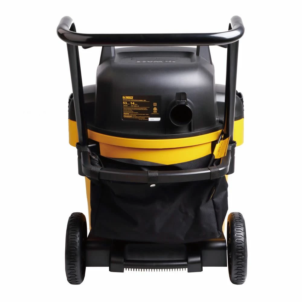 This 14 Gallon, 6.0 HP Wet/Dry Vacuum is designed for jobsite mobility with a convenient handle and large rear wheels. Move the unit around with ease. It also features a fine-dust cartridge filter for small, dry debris and wet materials. The large on/off switch features a water-resistant design for ruggedness and worry-free operation. The built-in 20 ft. power cord gives you the reach you need, and an attached accessory bag keeps your attachments and tools organized. A built-in tank drain makes draining easy.