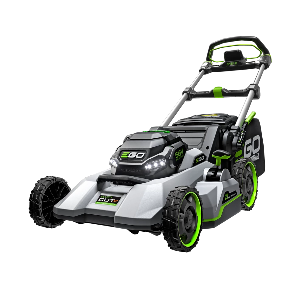 The EGO POWER+ 21” Select Cut™ XP Mower with Speed IQ™ self-propel technology digitally senses and adapts speed to your stride, no levers or dials to adjust. Plus, an industry-first digital display integrated into the handlebar provides real-time information to monitor battery charge status, blade speed, and self-propel mode in real time. The 21” Select Cut™ XP Mower with Speed IQ™ delivers 8.3 foot-pounds of cutting torque—power that exceeds gas without the noise, fuss, or fumes. The Select Cut™ Multi-Blade System is equipped with three interchangeable lower blades: the Mulching Blade, High Lift Bagging Blade, and Extended Run Time Blade. The Mulching Blade comes installed on the electric lawn mower and is ideal for weekly mulching, giving you the mulching quality expected from a high-end gas lawn mower. The High Lift Bagging Blade provides extra suction ideal for bagging, leaving your yard free of clippings. The Extended Runtime Blade provides an optimal balance of cut quality and runtime for all around performance. The Upper Blade is used in combination with the lower blade chosen to slice the grass into fine fragments, greatly enhancing cutting performance with all grass types. This cordless lawn mower harnesses the power of the industry’s most advanced 56V ARC Lithium™ batteries to deliver up to 90 minutes of run time on a single charge with the included 56V 12.0Ah ARC Lithium™ battery. Experience Power Beyond Belief™ with the EGO POWER+ Select Cut™ XP 21” Lawn Mower with Speed IQ™.