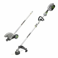 Using the arc-lithium technology, the Ego cordless trimmer and edger combo relies on industry-leading battery power rather than a fuel engine or electric. This same battery power is compatible with the other Ego power+ products, and it can be restored through the battery charging pack. Working from a battery pack makes it easier to maneuver around the lawn or area of landscaping needing attention. It is less cumbersome than dragging around an extension cord or continually looking for a power source.