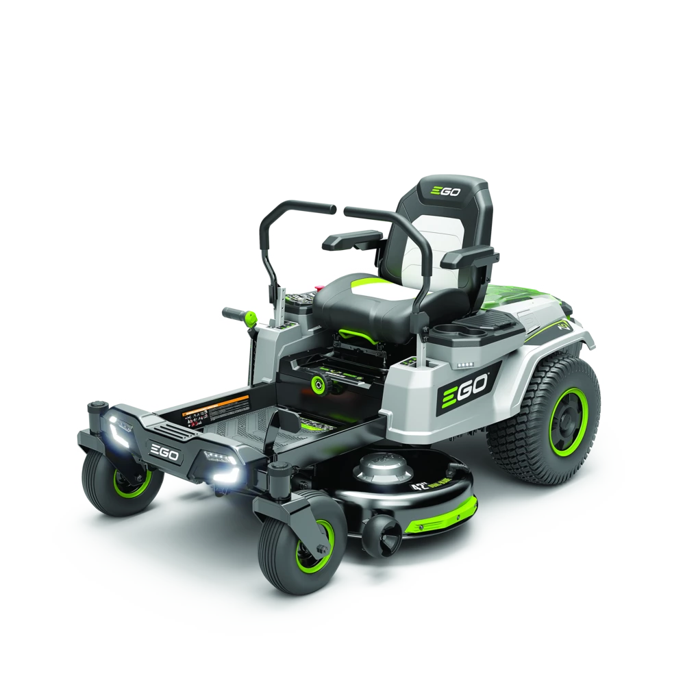 The EGO Power+ 42” Z6 Zero Turn Riding Mower is a ZTR like nothing else out there. Featuring Peak Power™+ technology, it can hold up to 6 EGO 56V ARC Lithium™ Batteries (4-10.0 Ah batteries included with mower) – the same battery technology powering all EGO products. Delivering 22 HP, equivalent to a gas engine, and reaching a top speed of 8 MPH, the Z6 covers up to cover 2-acres on a single charge. The 4 independent brushless motors deliver the power and performance of gas with an adjustable hydraulic seat suspension for a comfortable mowing experience. Customize the ride with a LCD interface featuring 3 driving modes (control / standard / sport) that can be accessed with the simple touch of a finger. Premium features like LED lights, USB charging port and Bluetooth come standard to make the experience unlike any other ZTR. Experience zero-turn mowing like never before with the all-new EGO Power+ 42” Z6 Zero Turn Riding Mower – Power Like No Other.