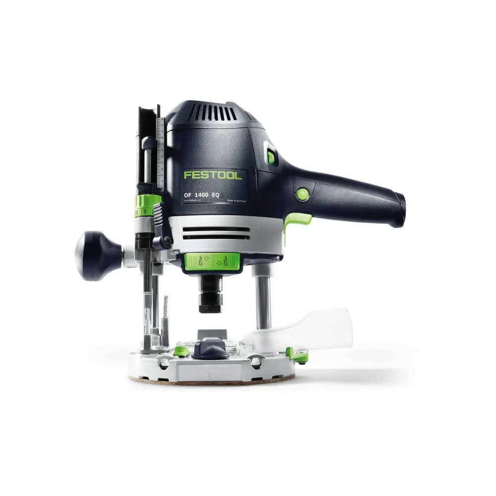 The OF 1400 Router provides 1400W of power in a machine that weighs less than 10 Lbs. It accepts 1/2 In., 1/4 In. or 8 mm bits. With enough power to handle most routing tasks and small enough to be extremely maneuverable, the OF 1400 is the one router every tradesperson should own. With a category-leading 2-3/4 In. plunge depth, precise to 1/256 In. (1/10 mm), this router gives you the power, precision, depth of cut, and dust extraction capabilities that will simplify your routing tasks. This is the new imperial version of this tool. It is identical to the previous version with the exception of the units on the depth scale. OF Routers produced after 2021 are not compatible with the router table CMS and all variations. 2-3/4 In. Plunge depth: enhanced depth is especially useful when routing on top of a template. System integration: designed for use with the FS guide rail system for guided cutting, VS 600 Dovetail jig for joinery applications, LR32 hole drilling system, MFS multirouting templates, and a wide range of other accessory options. Depth stop turret: three adjustable position depth stop turret for repeatable and consistent step cutting. Quad center line marks: as with all Festool routers, the OF 1400 EQ has a center line indention on each side of the base. This visual reference point allows you to align the center of the bit with the cut line. No more guessing where the center of the bit falls on your workpiece. Power: with 1400W and MMC electronic controls, the OF 1400 is a mid-sized router with enough power to tackle even your largest projects. Ratcheting spindle: one wrench bit changes with ratcheting action for faster and easier bit changes. Double column clamping: one knob locks the plunge depth securely, for less motor to plate deflection.