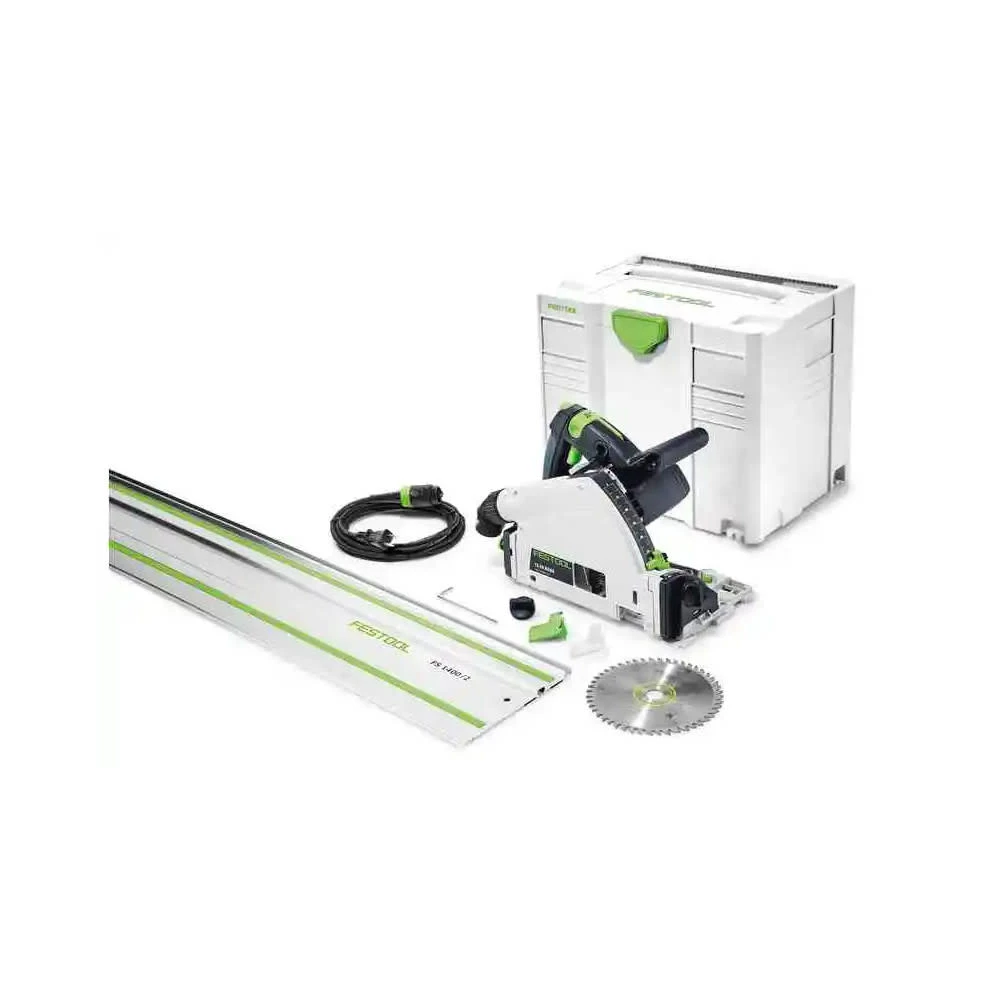 The concentrated torque of our track saw enables work progress at up to twice the speed with an increased saw blade service life. Our new generation of saw blades impresses when combined with maximum cutting performance and perfect cutting quality. With the clip-on splinter guard in combination with the guide rail, it is even possible to saw on both sides without virtually any splinters. The TS 55 enables precise work. The cutting edge from 90 Deg to 47 Deg remains unchanged even when the saw swivels. Combined with our guide rails, a wide range of saw blades, the dust extraction systems, saw table, angle stop and splinter guard, we offer a top-class sawing system. The spring-loaded riving knife helps to prevent binding and makes it easier to insert the blade in existing joints. The angles 0 Deg and 45 Deg can be selected directly using the locking positions. Undercuts are also possible with the extended adjustment option from -1 Deg to 47 Deg. Transparent sliding viewing window and the additional markings for the starting and end point provide a good view of the saw blade. The slimline housing allows users to make cuts up to the edges and in close proximity to the wall (12 mm). Our fitted control electronics enable speed control for temperature monitoring and perfect adaptation to the material (for FEBQ variant only). Always adapted to the working material. The FastFix spindle stop makes it extremely easy to change the saw blade. The correct saw blade is fitted in just a few steps and the sawing speed is adapted to the material. Easy to read and adjust: The dual cutting depth scale for working with or without a guide rail. Now even easier thanks to extra-large font and precision adjustment.