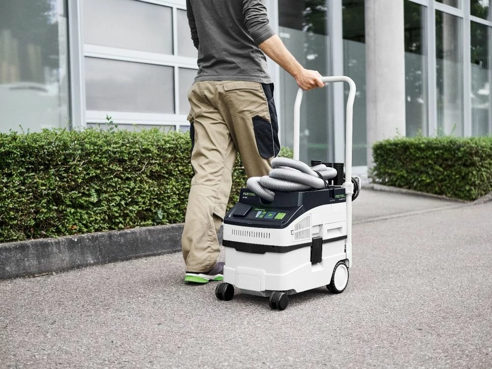 The new CT 15 HEPA dust extractor is the perfect blend of value and functionality. Ideal for cleaning on construction sites, production shop, or the home workshop: With a 3.96 gallon container volume, the CLEANTEC CT 15 extracts dust, dirt, and water. Its design ensures that almost the entire container volume can be used – for long periods of work without having to change the filter bag. An economical choice, the CT 15 includes many of the standard features found other Festool dust extractor models. Auto-start tool-triggered activation, Full HEPA Unit Certification, variable suction, a touch control panel, and 3-year comprehensive warranty which covered wear and tear. The CT 15 offers a compact footprint and lightweight design that are well suited for jobsite use.