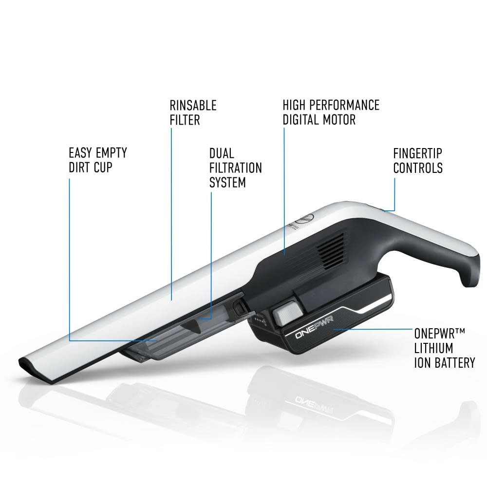 Designed to make cleaning easier and more convenient, the ONEPWR™ Dust Chaser™ Hand Vacuum has the performance and power to clean where you need it, when you need it with a lightweight and sleek design. Built with a high-performance digital motor, this hand vacuum has 2X more suction* for powerful pickups. Tackle the dust, dirt, or spills anywhere including tight spaces and hard to reach spots around your house or in your car with the built-in extended nozzle, the 2-in-1 crevice tool, and the upholstery tool. Equipped with dual-stage filtration with HEPA Media, the Dust Chaser™ lets you enjoy powerful suction through your entire clean without fading while capturing 99.97% of dust, dirt & allergens down to 0.3 microns.
