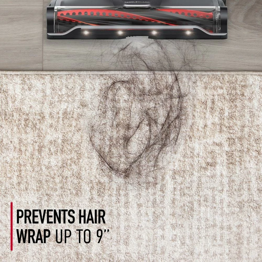 Easily clean multiple surfaces without worrying about hair (up to 9”) wrapping around the brush roll
