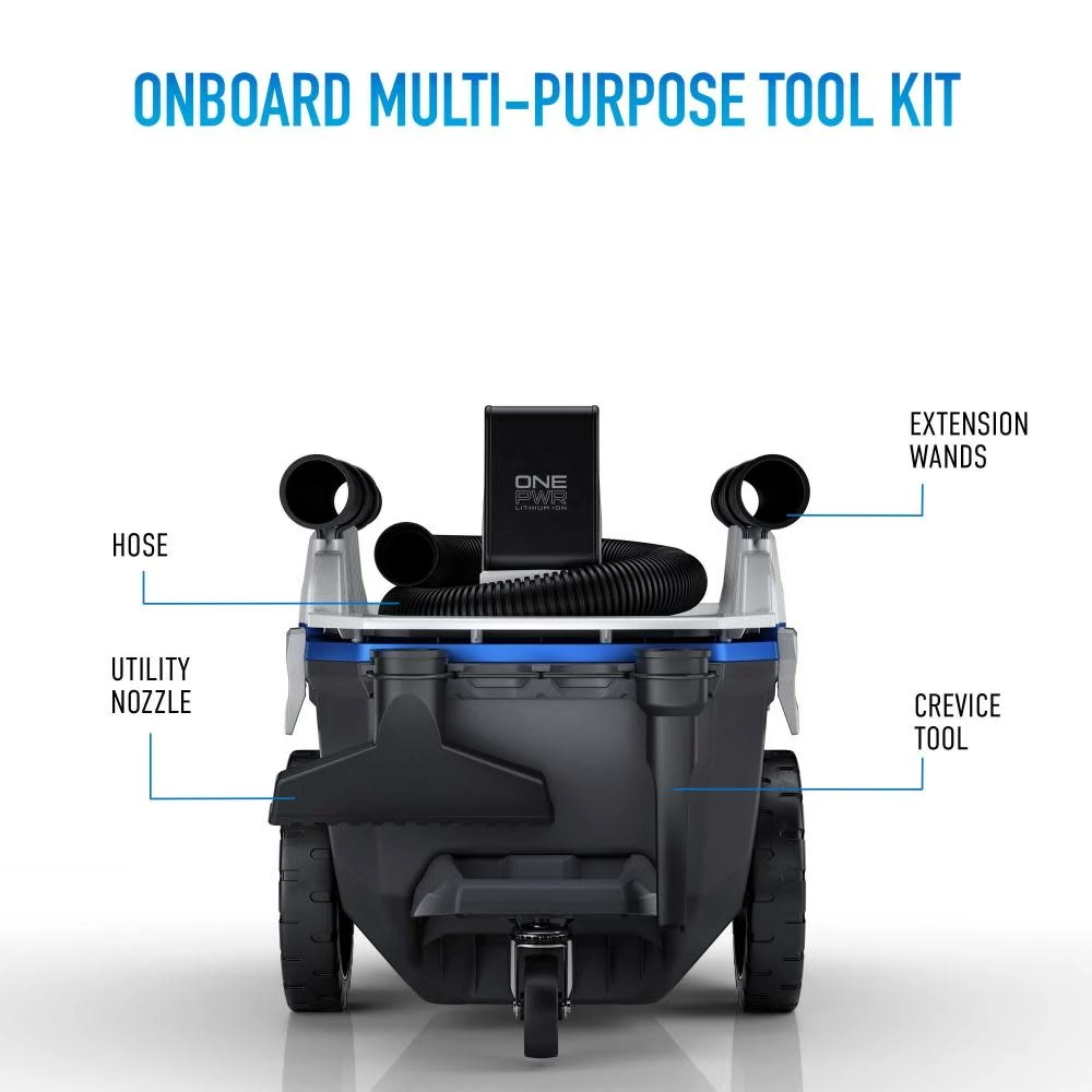 Powered by the ONEPWR™ Lithium-Ion battery for the fade-free power and run time to clean anywhere, anytime without being tethered to a cord.