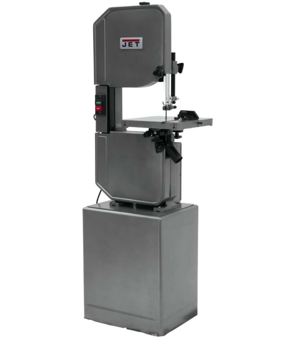The J-8201VS, 14-Inch Metal/Wood Vertical Variable-Speed Bandsaw can cut through pipe, conduit, boards and all sorts of other materials quickly and easily. It features a 1-hp motor that runs blades at up to 2,600 surface feet per minute when cutting wood and 340 when cutting metal. This Jet vertical bandsaw’s cast iron frame is strong enough to stand up to lots of regular use as well as various impacts. A miter gauge allows you to set the cutting angle for more precise results. The Jet bandsaw’s dust chute channels particulates safely away from your eyes and face so you can work without irritation. This tool’s safe design meets the CSA group’s guidelines.