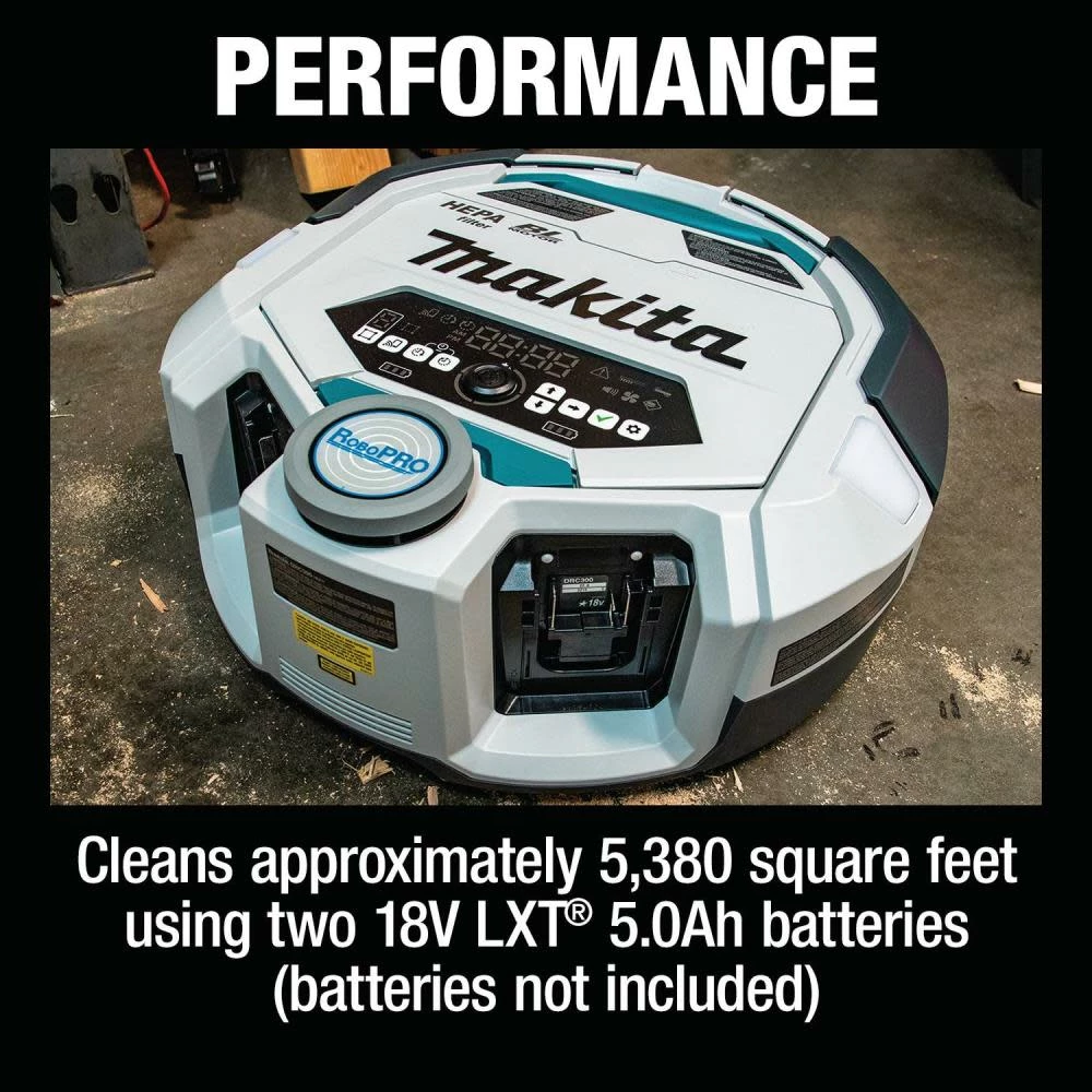 Cleans approximately 5,380 square feet of hard floor surfaces using two 18V LXT® 5.0Ah batteries BL1850B (batteries not included)