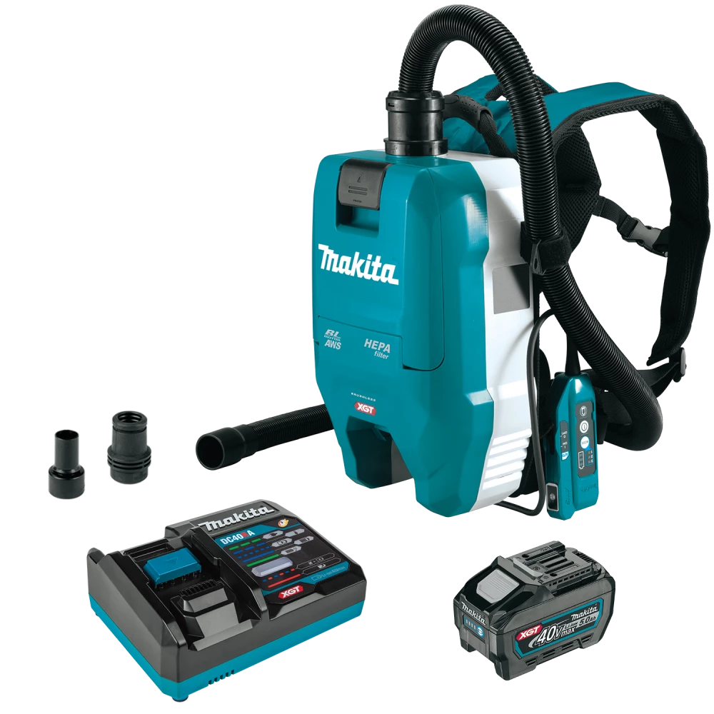 The Makita 40V max XGT® Brushless Cordless 1/2 Gallon HEPA Filter Backpack Dry Dust Extractor (GCV06) with AWS is a powerful and portable clean-up solution that eliminates extension cords that trail corded backpack dust extractors. It’s a powerful and portable dust extraction solution for contractors by bridging the gap between low-capacity on-board dust extraction systems and larger capacity but less portable wheeled canister job site vacuums. The GCV06 is ideal for cleaning crews, as well as for construction applications when used as part of a dust extraction system.