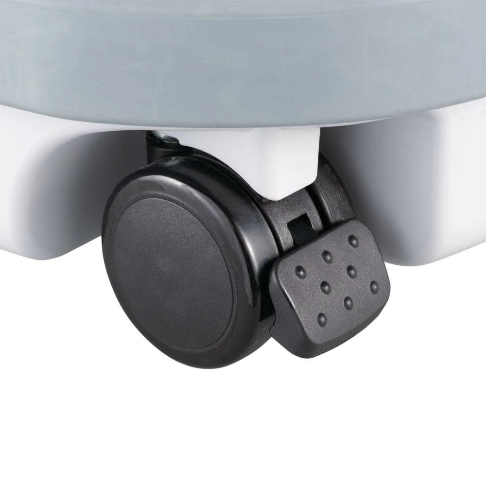 The vacuum includes a 1” x 11” anti-static hose and cuff adapters for extended compatibility. Convenience features include four rotating wheels for 360-degree mobility, rear casters with locking levers, and a large rubber bumper to help prevent damage to the work environment. Quick-release metal latches provide easy access for removal and disposal of debris. It features IPX4 weather resistant construction for durability and long life.