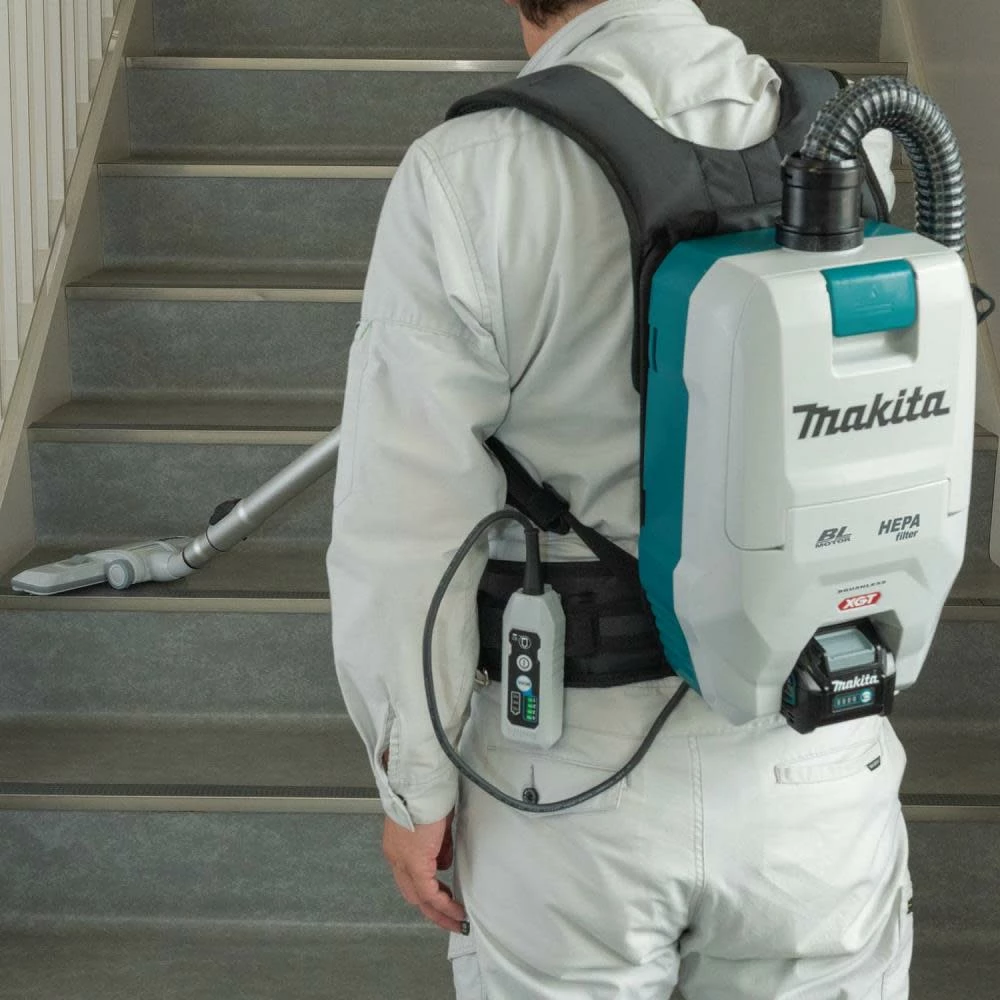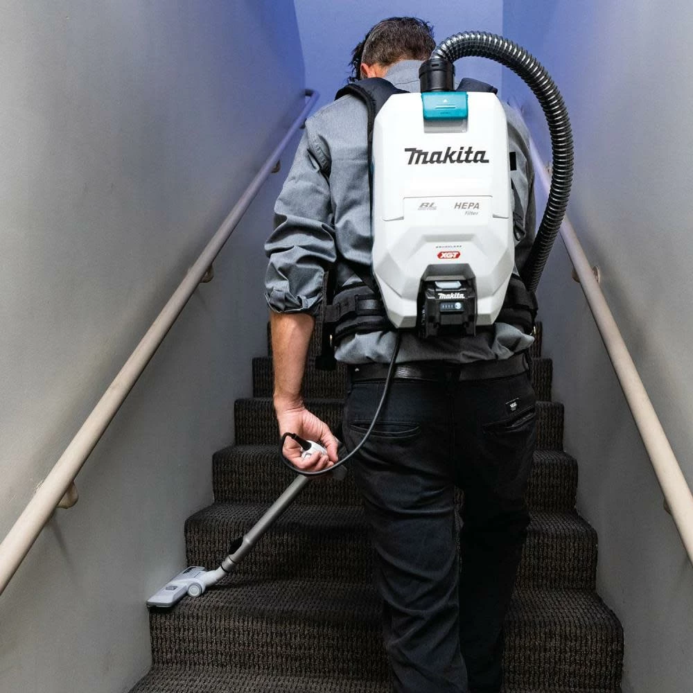 The Backpack Dry Vacuum weighs only 7.5 lbs. (with empty dust bag and without 40V max XGT® battery), has padded shoulder straps, and waist belt with multiple adjustments for a comfortable fit. Cordless and compact, there is 4-speed power selection for power and run time management and has an included 1-1/4” x 32” flexible anti-static hose with a telescoping wand, 12-1/2” floor nozzle, and 13” white crevice nozzle. The efficient HEPA filter captures 99.97% of particulates .3 microns and larger extending the life of the main filter, and the 2-quart collection container is easily removed for disposal. When using 40V max XGT® 5.0Ah battery, users will get up to 1 hour of run-time on medium setting.