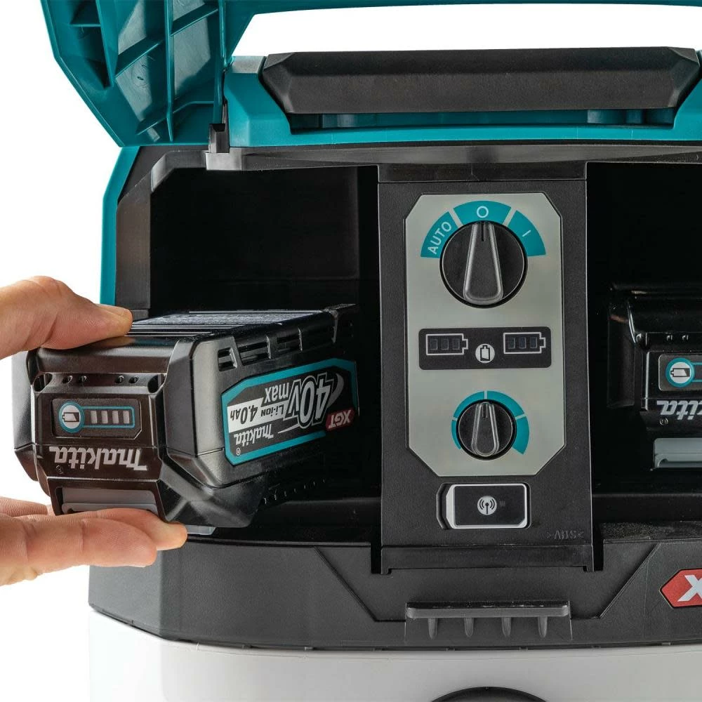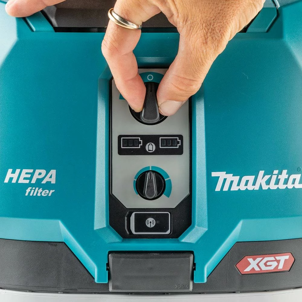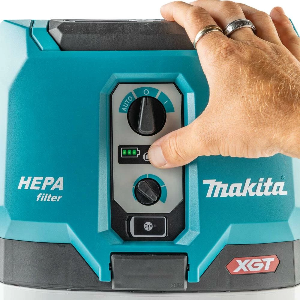 The 40V max XGT® Brushless 4 Gallon HEPA Filter Dry Dust Extractor with AWS® (GCV04PMX) delivers over 2X more suction power with 148 CFM and 92″ water lift*.