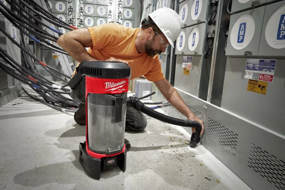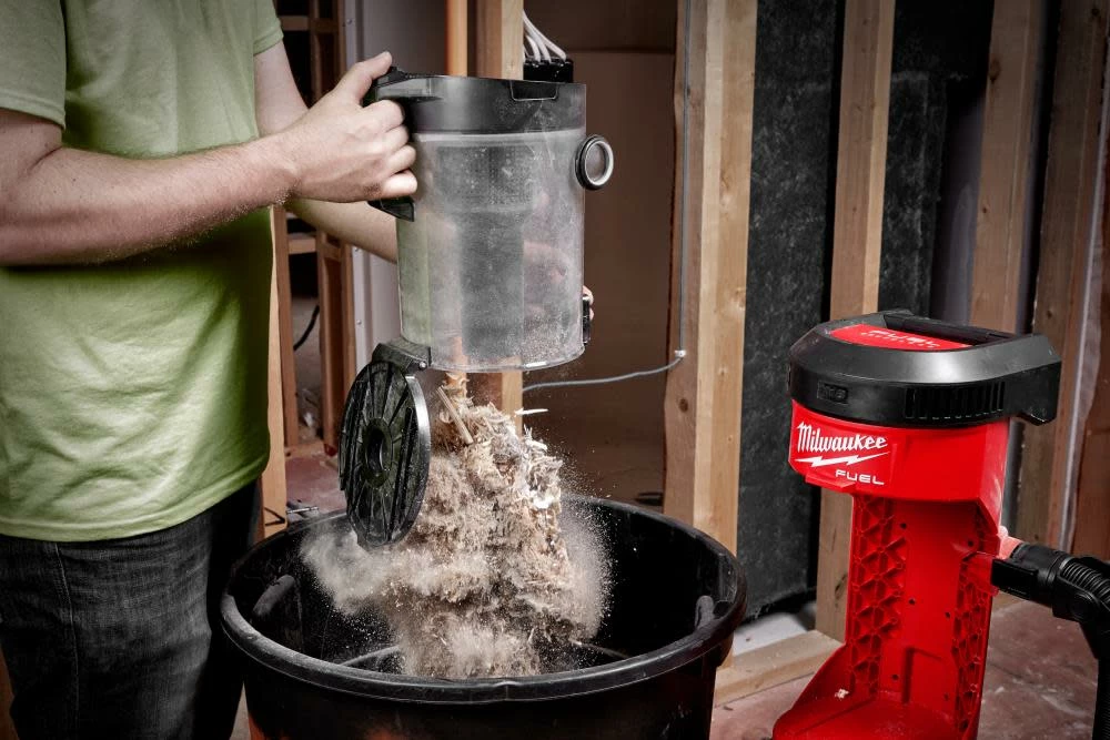 The M18™ FUEL™ 3-in-1 backpack vacuum brings unmatched performance, portability, and versatility to the jobsite cleanup category. A POWERSTATE™ brushless motor and cyclonic technology delivers up to 2X more suction than the competition, allowing users to clean up drywall dust, concrete dust, wood/metal shavings and other common jobsite debris quicker and more efficiently. A quick release removable harness with an integrated canister hook allows users to wear, hang, and carry the product for ultimate cleaning versatility on any jobsite. At only 76 dB(A), the vacuum is up to 3X quieter than a traditional jobsite vacuum, allowing for quiet operation in occupied spaces. As a part of the M18 system of tools, it is powered by REDLITHIUM™ battery packs, which deliver up to 25 minutes of run time on a HIGH DEMAND™ 9.0 battery pack in high mode, and over 40+ minutes of run time in low mode. For added convenience, the 0885-20 empties debris at the click of button, reducing downtime when the canister is full and allowing users to get back to the task at hand. Whether you are doing spot, area, or final cleanups, the M18™ FUEL™ 3-in-1 backpack vacuum can go anywhere on any jobsite to complete countless cleanup tasks. Battery and charger sold separately.