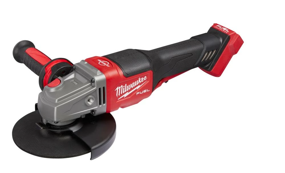 The M18™ FUEL™ 4-1/2 in. to 6 in. braking grinder is Milwaukee’s most powerful small angle grinder to date, with a high performance brushless motor that generates 13 A corded power. The POWERSTATE™ brushless motor delivers 9,000 RPM, giving the tool the power needed to exceed performance expectations in all applications, as well as longer motor life, providing lower cost of ownership compared to brushed motors. Integrated Rapid Stop™ braking technology stops all accessories in 3 seconds or less, creating a safer user experience. By offering a full 6 in. capacity, users can feel confident replacing their corded tools with the M18™ FUEL™ 4-1/2 in. to 6 in. braking grinder. The power and runtime delivered by the M18™ 6.0 high output batteries provides the user with more material removed per charge, making users more productive and efficient on the jobsite. Tool-free accessory changes using the FIXTEC nut and guard adjustments mean less downtime during work. Grinding wheel sold separately.