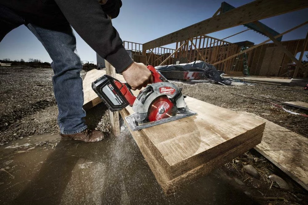 Designed for the carpenter, remodeler and general contractor the M18 FUEL™ 7-1/4 in. circular saw from Milwaukee generates the power of a 15 A corded saw, cuts faster than a 15 A corded saw and gives users up to 750 cuts per charge. The POWERSTATE™ brushless motor provides 5,800 RPM and higher speeds under load for corded cutting performance. REDLINK Plus™ intelligence ensures maximum performance and protection from overload, overheating and over discharge. The M18 REDLITHIUM HIGH OUTPUT™ HD12.0 battery (sold separately) delivers unmatched run-time in all applications. All magnesium guards and shoe delivers extreme durability for jobsite conditions. A built-in rafter hook offers quick and easy storage and an electric brake stops the blade quickly after cuts are complete for maximum productivity.