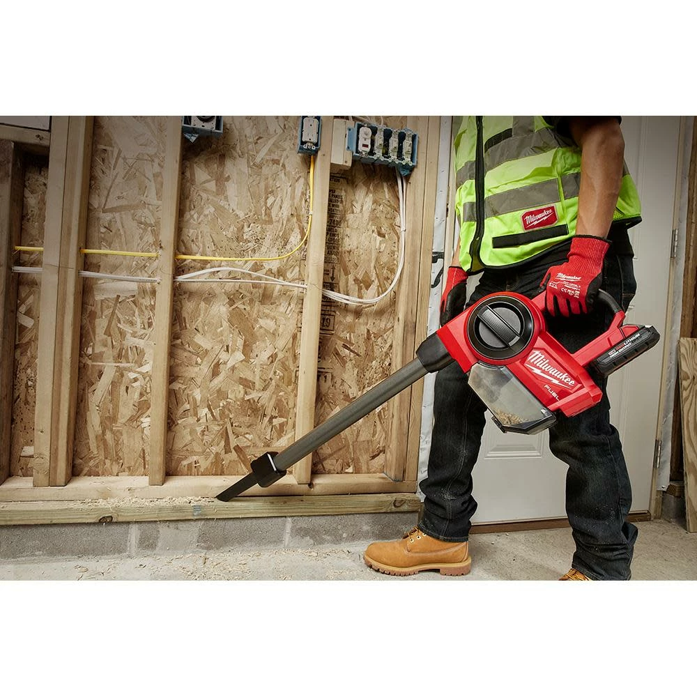 The MILWAUKEE® M18 FUEL™ Compact Vacuum provides powerful performance and ultimate versatility to excel in small-area and spot clean-up applications on the jobsite. Armed with a POWERSTATE™ Brushless Motor and exclusive two-stage debris separation, the compact shop vac is optimized for dry jobsite debris. The two-stage debris separation divides small and large particles into the bagless canister prior to entering the filter. This delivers up to 50% more sustained suction versus the competition and more efficient clean-up. For maximum versatility, the portable vacuum’s orientation and quick-change accessories can be manipulated from upright use at ground level, waist level, or for use overhead. It comes fully equipped with an extension wand, powered floor tool, floor tool, flexible hose, crevice tool, utility tool, brush tool, accessory holder, HEPA filter, and foam pre-filter. Battery and charger sold separately.