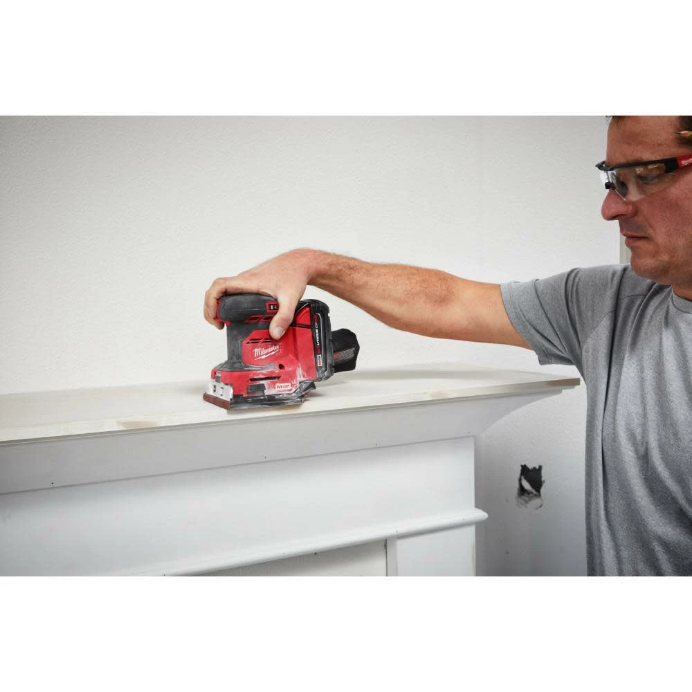 The Milwaukee M18™ orbital 1/4 sheet sander is perfect for professional carpenter, remodeler and general contractor. Low vibration level means added comfort and reduced fatigue to the operator. Variable speed dial allows to adjust speed from 11000 to 13000 OPM for greater material removal control. 1.6 mm orbit diameter delivers strong balance which means excellent removal rate and surface finish. REDLINK technology offers maximum performance while protecting from overloads, heating and over-discharge. The included cotton dust bag is durable and delivers great resistance against tears and leaks. It collects up to 95% dust ensuring a cleaner work environment with less clean up time. The two-step clamp system allows for quick and easy sandpaper changes. It comes with dust bag, paper punch, universal hose adapter, 120-Grit sanding sheet and 220-Grit sandpaper.
