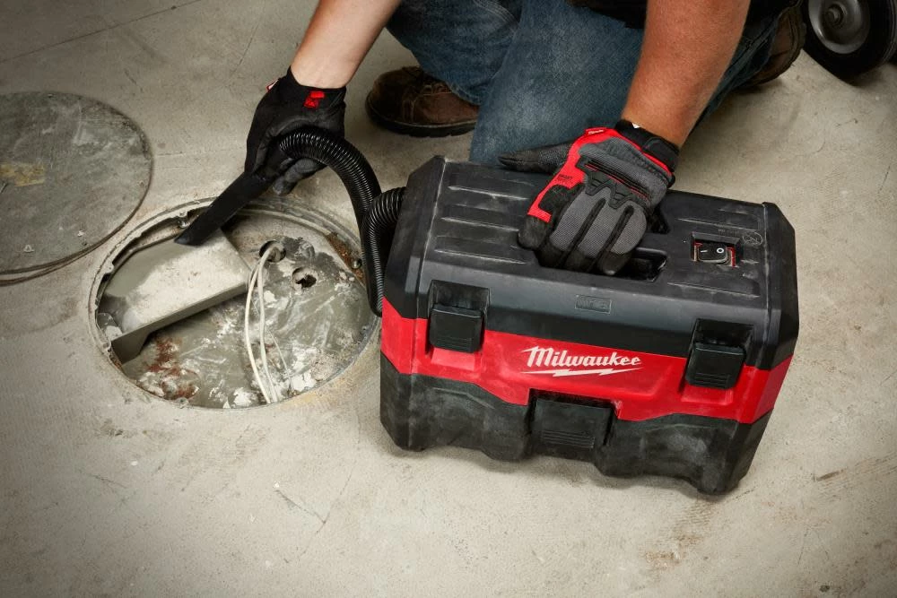 The 9.4 lbs. Milwaukee M18 Cordless Wet Vacuum includes: crevice tool, filter assembly and a wide utility nozzle