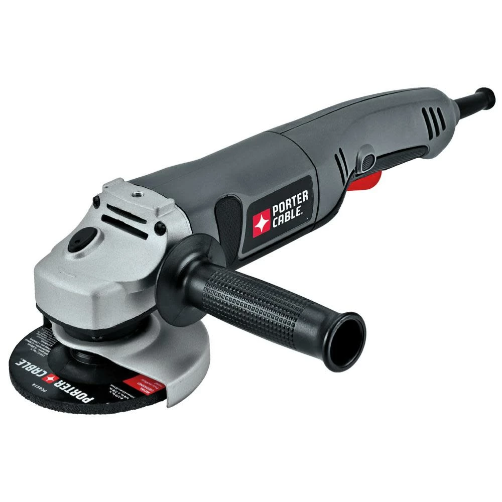 The PORTER-CABLE 7.5-Amp small angle grinder delivers reliability and performance with a cast metal gearbox and motor capable of 10,000 RPM equipped with a 4-1/2-in wheel, the small angle grinder is ideal for cutting rebar and concrete, removing paint and rust, grinding welding beads and sharpening blades. For optimal control, the small angle grinder is outfitted with a three-position side handle to allow for positioning the hand closest to the material on the right, left or top of the grinder. Additional features include a spindle lock for easy wheel and accessory changes, an extended on/off trigger switch to accommodate gloved hands and a soft-grip handle.