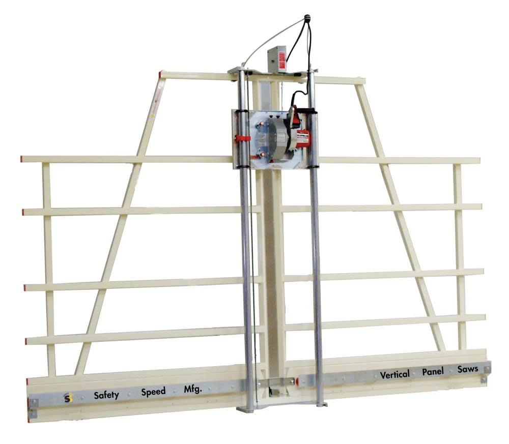 The H5 panel saw offers full-sized vertical panel saw productivity. The H5 cuts within 1/32 In. on a wide variety of panel materials up to 1-3/4 In. thick. The H5 saws are used in all kinds of panel processing applications. This machine will cross cut panels up to 64 In. tall. The H5 comes standard with a 3-1/4 HP, 15 amp industrial duty saw motor, adjustable vertical and horizontal rulers, spring loaded counter balance system, quick change from vertical to horizontal cutting, 1 year parts warranty, and a lifetime frame warranty.