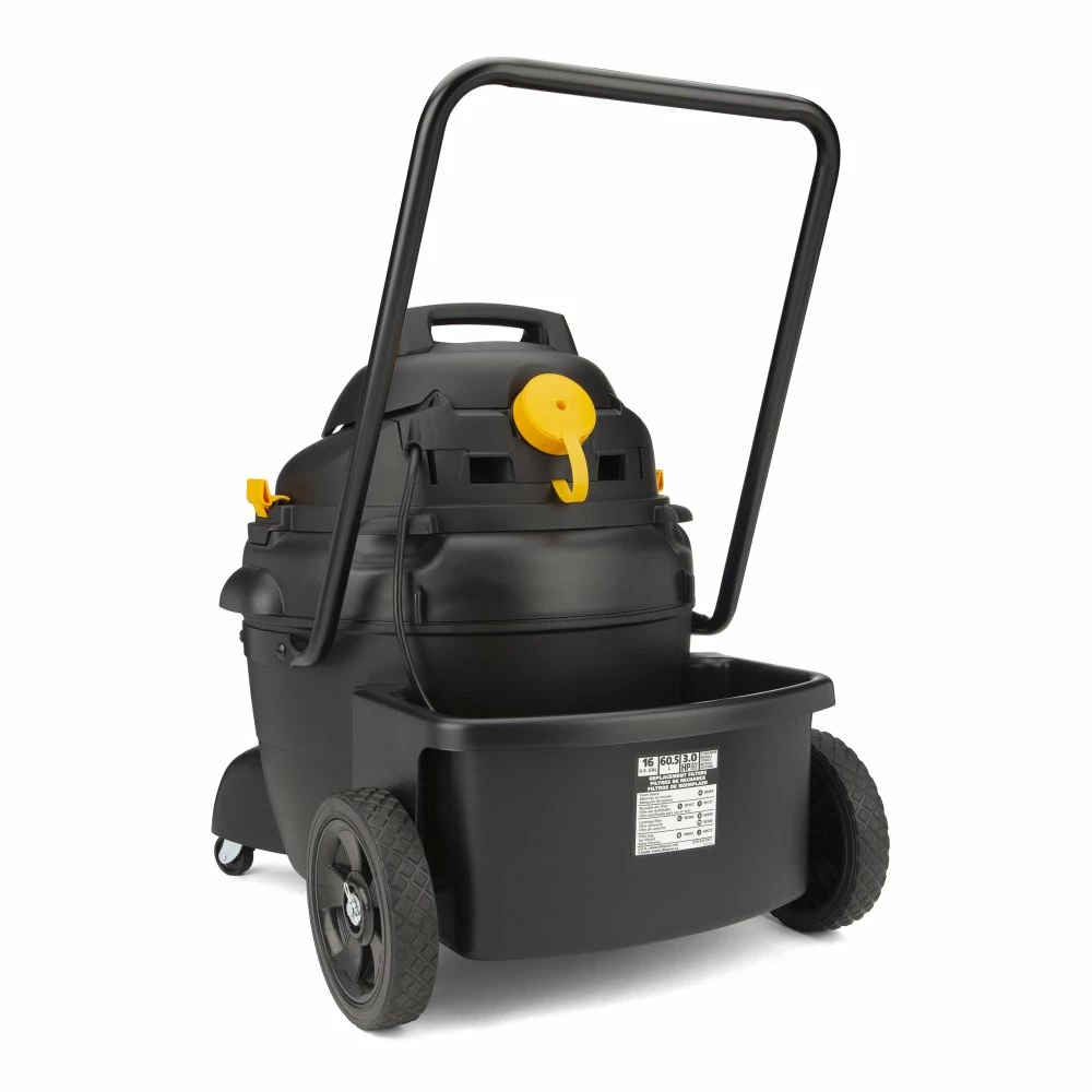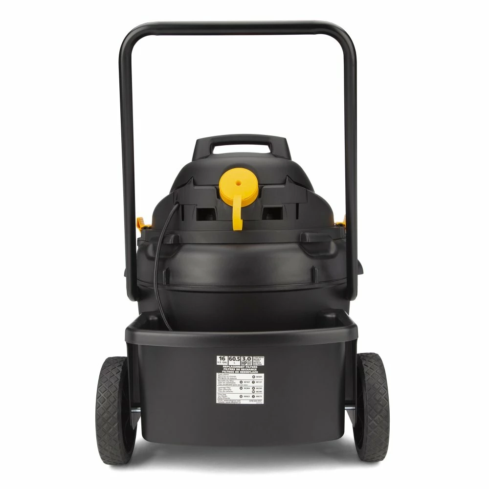 The Shop-Vac® 16 Gallon 3.0 Peak HP Contractor Series Vacuum with two-stage Long Life motor can vacuum materials such as dirt and debris, nails, metal and wood chips and liquids.