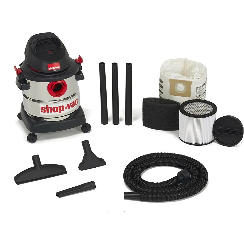 The Shop-Vac 5 Gallon 4.5 peak HP stainless steel wet/dry Vacuum features a durable, easy to clean, stainless steel tank. This vacuum provides you with powerful cleaning for picking up wet or dry messes in your garage, workshop or basement. Attach the hose to the rear blower port to blow dirt out of those hard to reach places.