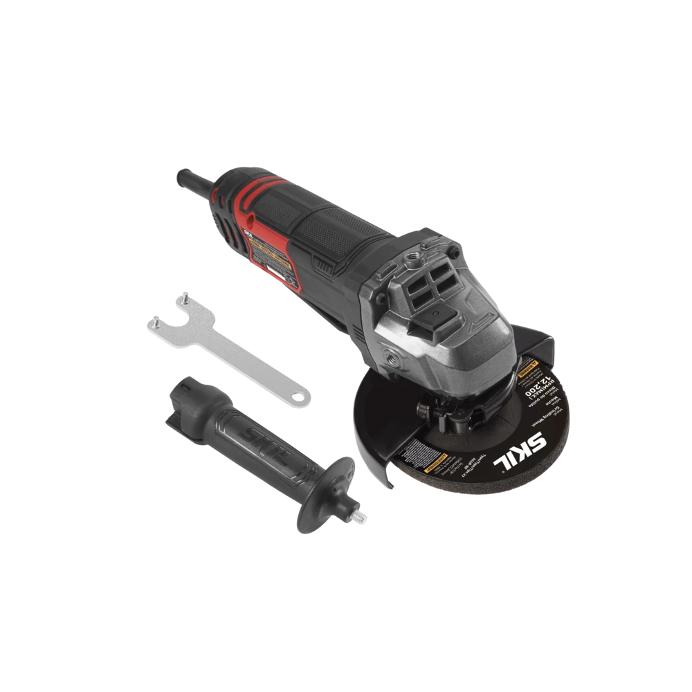 Powerful and task efficient. The SKIL 8 Amp Angle Grinder offers a powerful motor that can tackle a variety of tasks. This tool offers a host of user-friendly features, such as a paddle switch and onboard wrench storage. The ergonomic design, soft rubber grip, and 3-position side handle provide more comfort and control, so you can work longer.