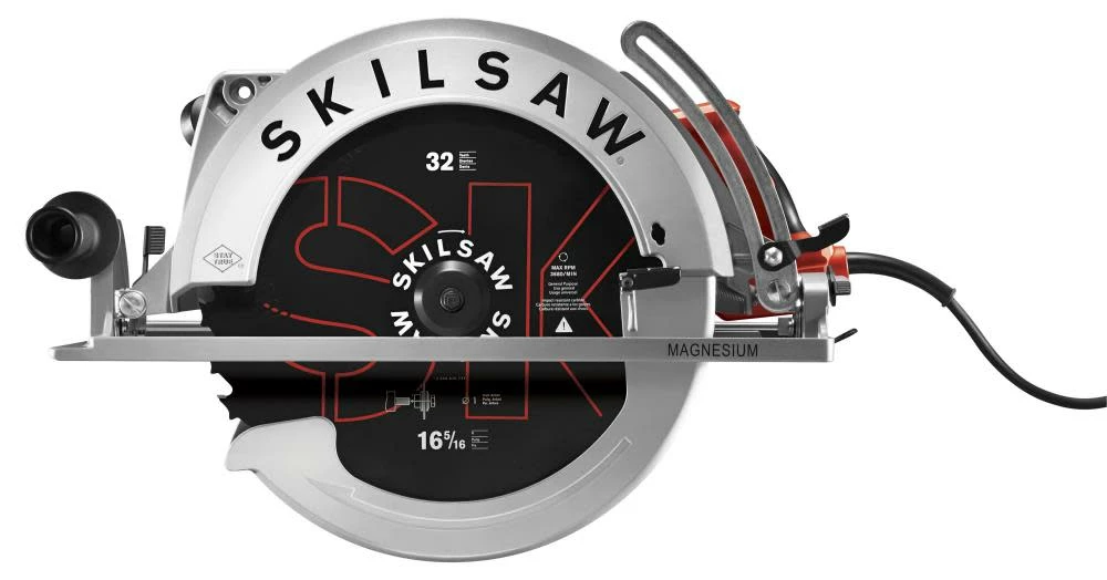 Super Sawsquatch™ is the new Boss. The biggest worm drive saw on earth tears through whatever you throw at it. This beast of a saw boasts a 6-1/4 In. cutting capacity to power through 6x in one easy cut. The magnesium, die-cast foot plate guarantees true, square cuts every time. With lightweight, durable magnesium construction, brass worm drive gearing, and our 15 Amp dual-field™ motor, everything about this saw is built to be relentless. The included 16-5/16 In. Skilsaw blade makes perfect cuts right out of the box.
