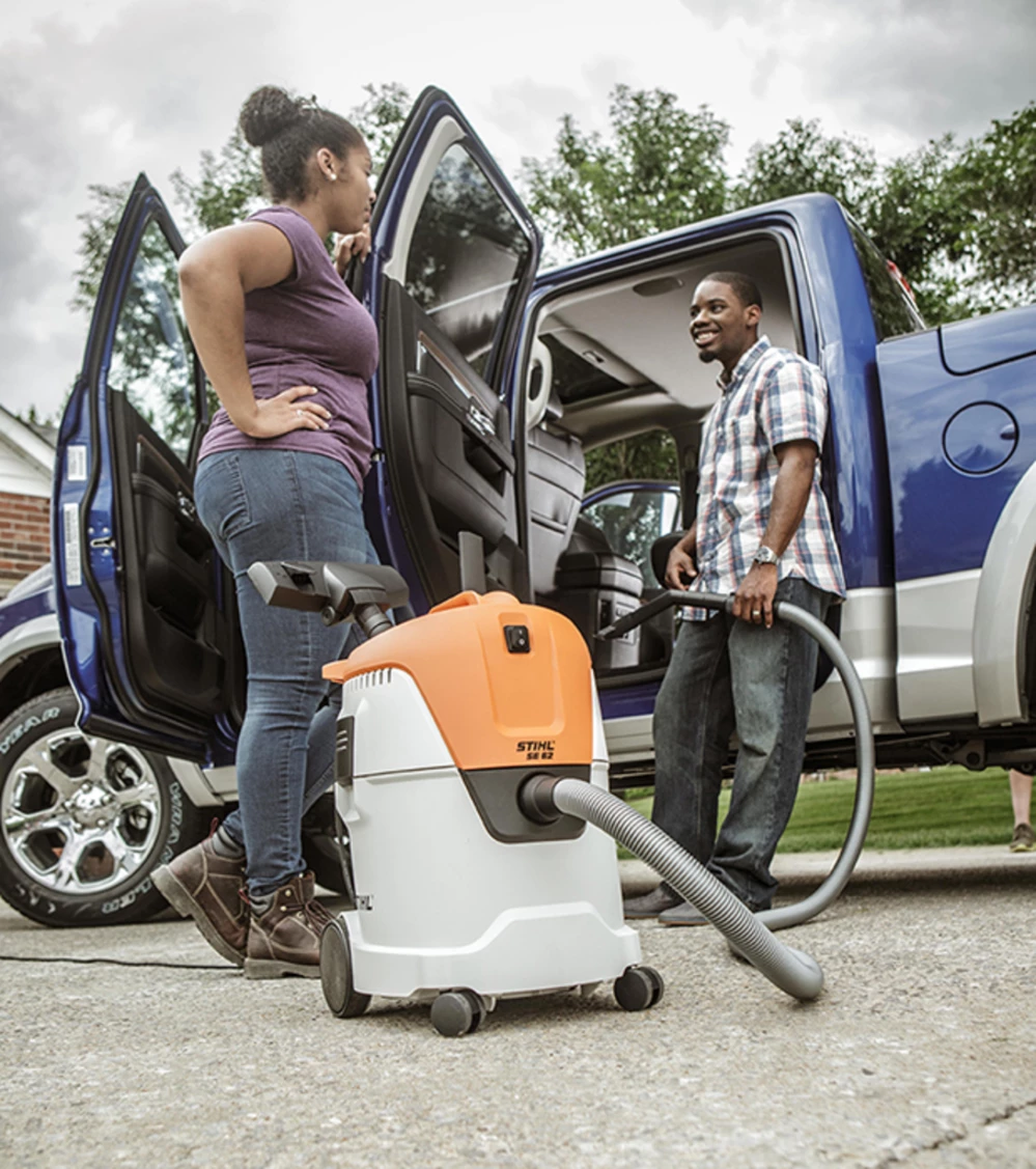 When you need professional cleaning power at home, plug in the STIHL SE 62 wet/dry vacuum. With 210 mbars of suction, it’s powerful enough for a construction site, but designed to fit neatly into your home or workshop. The SE 62 features a 6.6 gallon capacity canister and built-in filter cleaning system. Its pleated filter system is long lasting and traps dust, hair and other fine particles. The SE 62 is also versatile, featuring three cleanup tools – a universal tool, crevice tool and floor tool – each stored directly on the vac for quick access. The 16′ electrical cord and 8′ suction hose help you to cover more area freely, while its high-performance polymer tube provides greater durability over plastic tube alternatives. This is your vac for heavy-duty household cleanups.