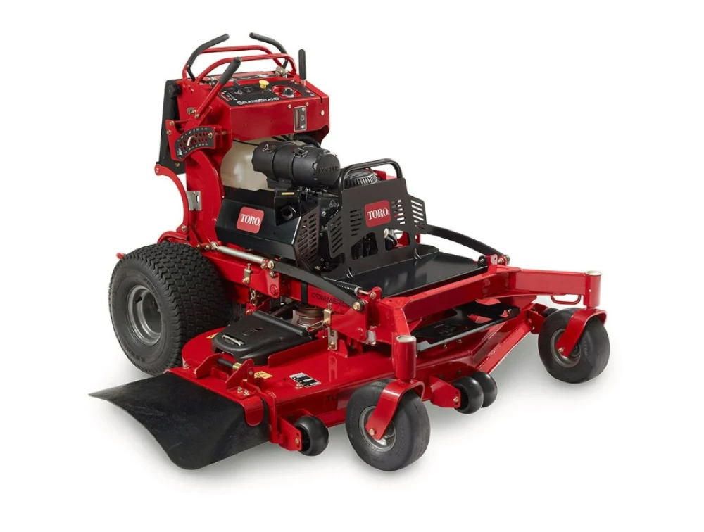 Rough bumps and challenging terrain are all in a day’s work. Feeling them shouldn’t have to be. The Toro GrandStand combines the speed and comfort of a zero-turn rider with the on-and-off ease of a wide area walk-behind — creating a fast, maneuverable and more productive alternative. And now the GrandStand is even better with all-new next generation upgrades that add up to higher productivity, lower maintenance and easier service. This mower has a 25 hp Kohler EFI 747cc engine.
