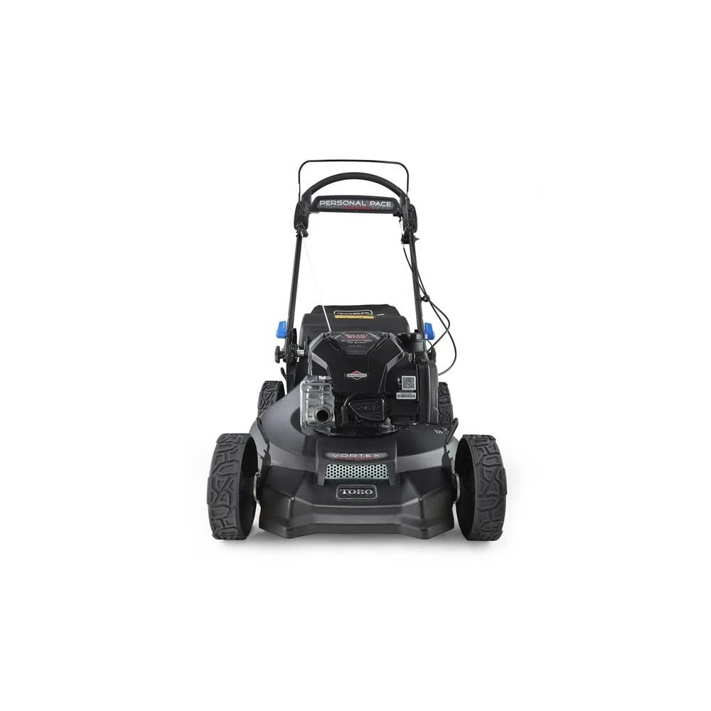 Supercharge your mow: with the power of Vortex air intake technology – it’s like having an EF 5 tornado under the commercial grade cast aluminum deck, through Toro’s precision engineering, Vortex technology pulls more air into the cutting chamber, creating more airflow and time for the blades to mince grass into ultra-fine bits that are then driven back into your lawn to feed as lawn vitamins, transforming your lawn into green perfection