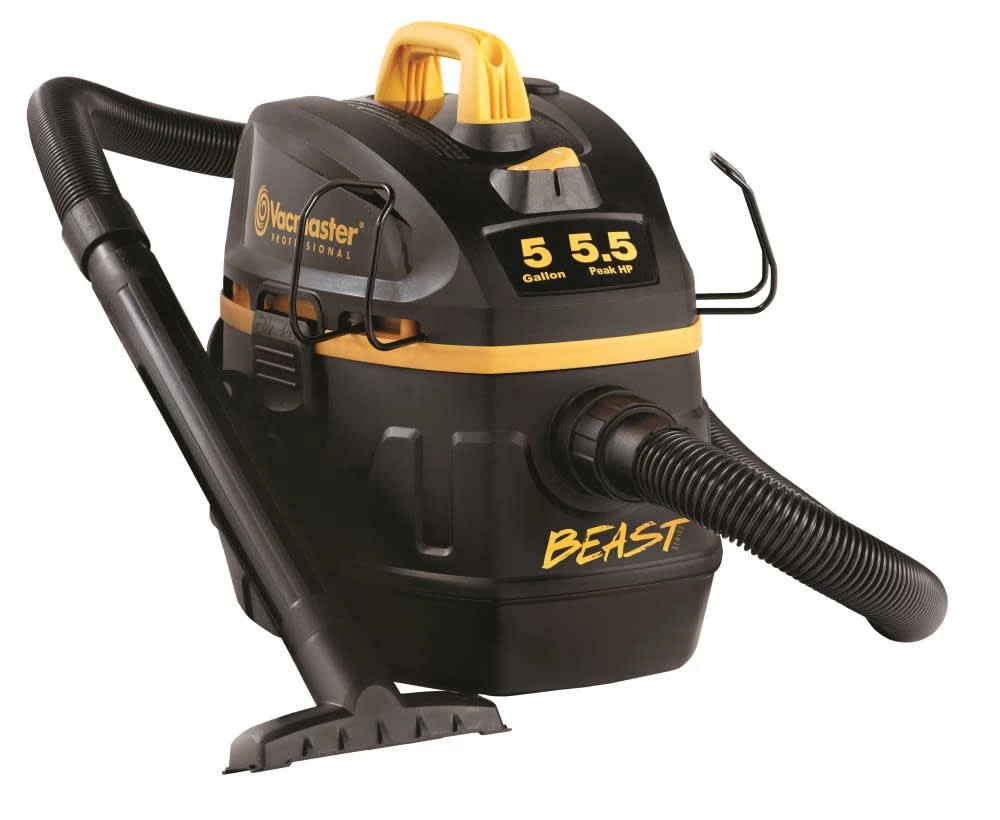 This VACMASTER PROFESSIONAL beast series 5 Gallon 5.5 peak HP Wet/Dry Vac is a powerful high-performance Vac designed to tackle the toughest cleanup projects—at the jobsite, around the shop, or in the garage. On-board hose, accessory, and power cord storage eliminates unneeded hassle and minimizes total storage space. Over 25 ft. of cleaning reach (7 Ft. hose and 18 Ft. power cord) allows you to reach farther without unplugging the unit. Quickly control the power with the large dust sealed on/off switch. It also includes 8 accessories for nearly any task: 7 ft. x 1-7/8 in. kink resistant premium hose, utility nozzle, crevice tool, car nozzle, (1) extension wand, fine dust cartridge filter, foam wet filter, and air noise diffuser.